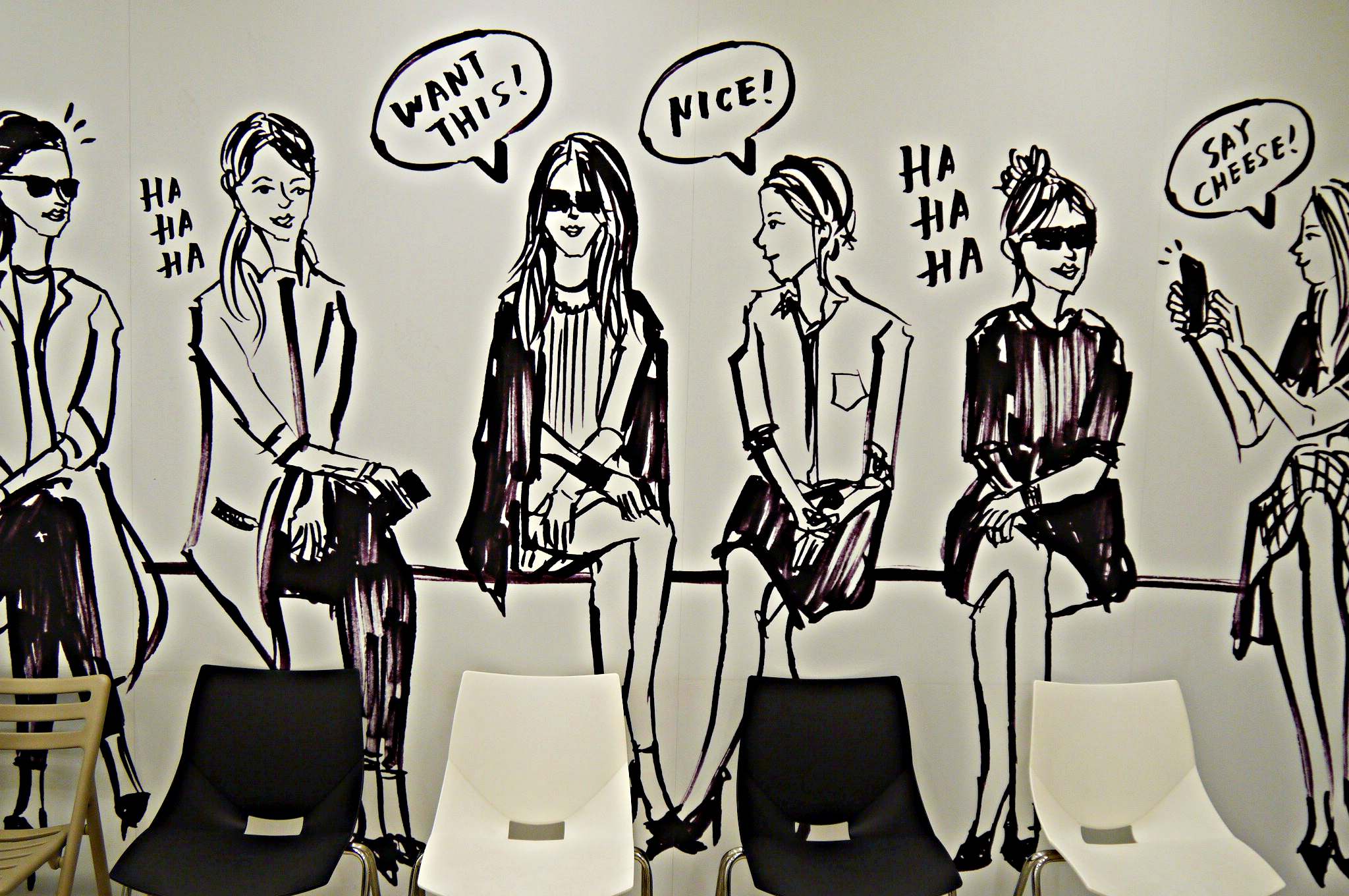 而1樓更衣間內也有一個超好拍的等候區,牆上繪製的摩登都會女性圖,相當引人注目。