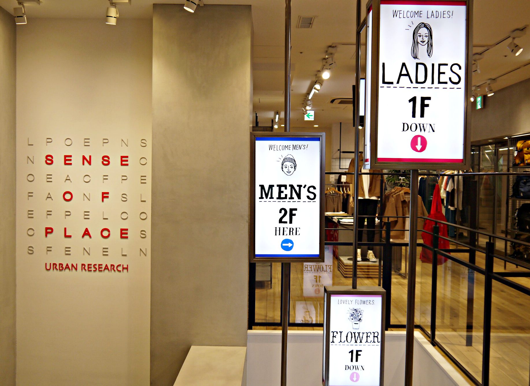 SENSE OF PLACE是URBAN RESEARCH旗下的快速時尚品牌,在URBAN RESEARCH的眾多品牌當中,屬於相對低價位,但卻對流行敏感度高的品牌。從男女的基本款服飾到充滿時尚感的服飾配件都有做販售,因此可以在一家店內購足所有想買的單品。