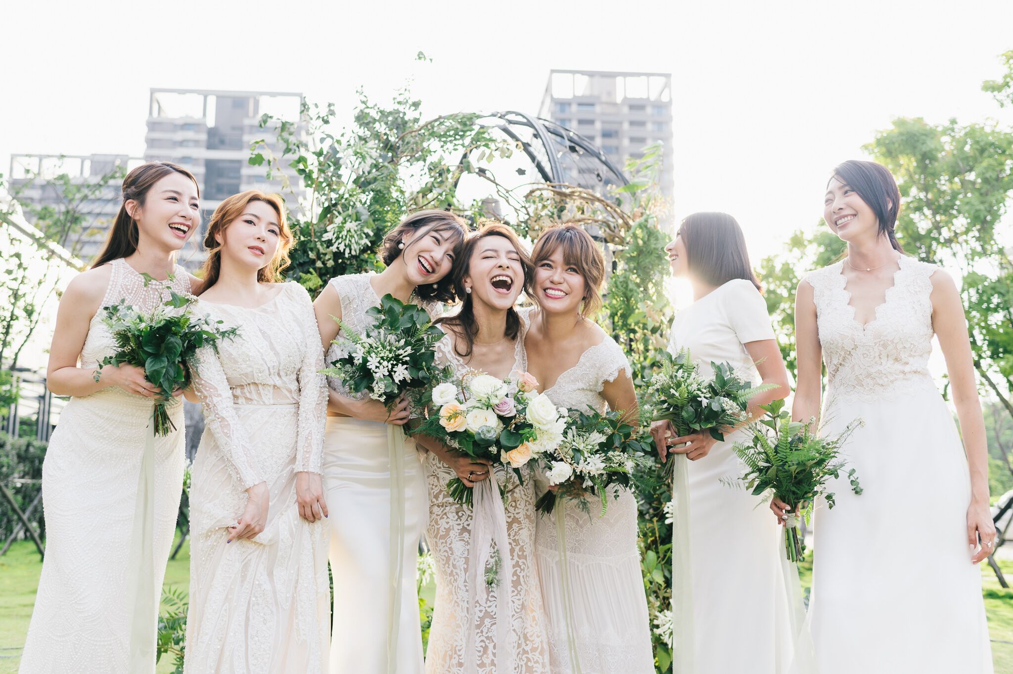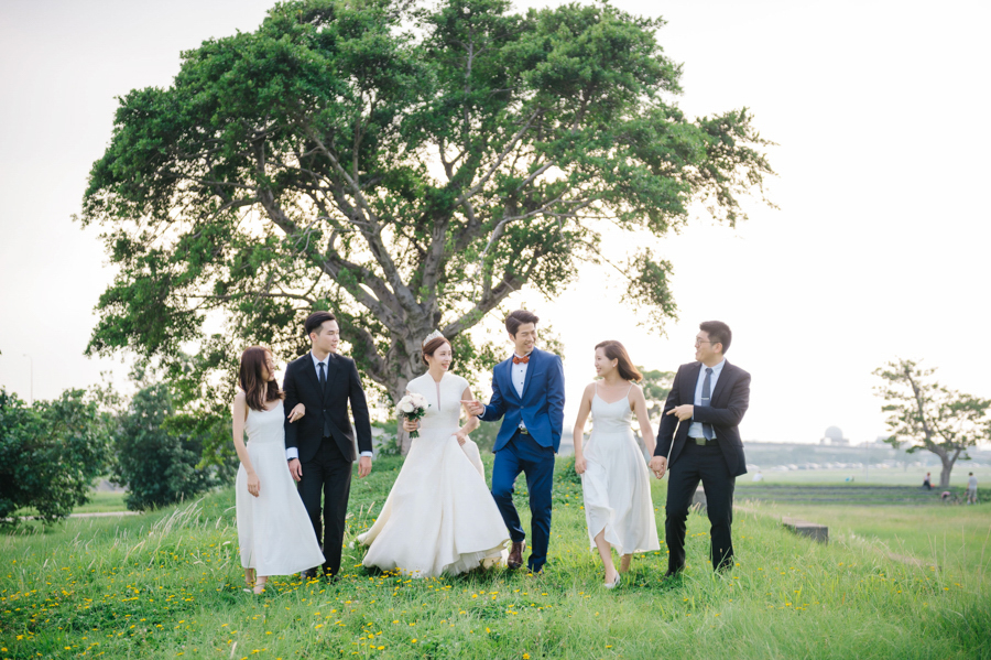 以往伴娘團的禮服就像在穿制服般,總是給人襯托新娘的感受居多,為此紫瀅特別提到每個伴娘的體態都不盡相同,所以建議可以利用不同的剪裁款式去展現個人身材優點,掩飾缺點,例如上身較魁武的女生選擇平口,臀部較大可選擇A Line的款式、有人穿削肩有人穿細肩帶等,不但能營造出豐富的層次感,也能讓閨蜜伴娘們修飾身材,讓整場婚禮無論主角配角都能擁有美好回憶。