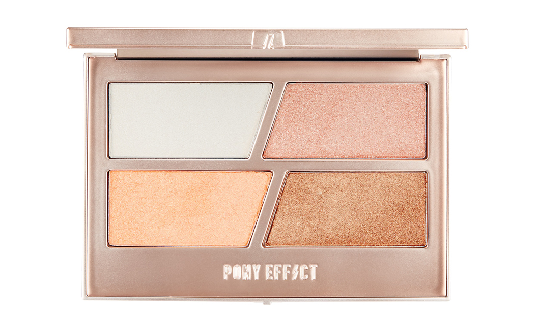 是一款多用途的彩妝盤,可作為打亮、修容、眼影使用,全身的肌膚也都能用,創造絕美的立體光澤。一盤由四種顏色組成,分別為銀白、玫瑰金、古銅、橘金色,可單獨上色,也能混色多層次疊擦,創造光澤美肌。