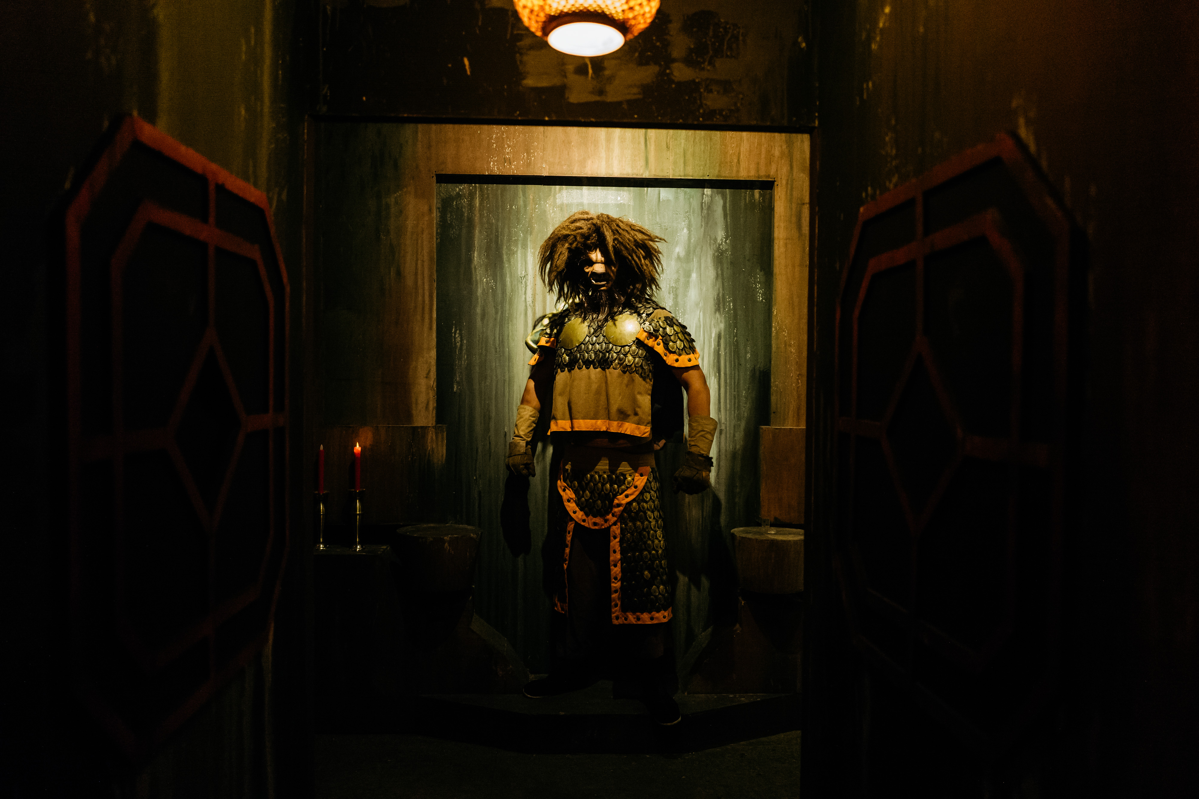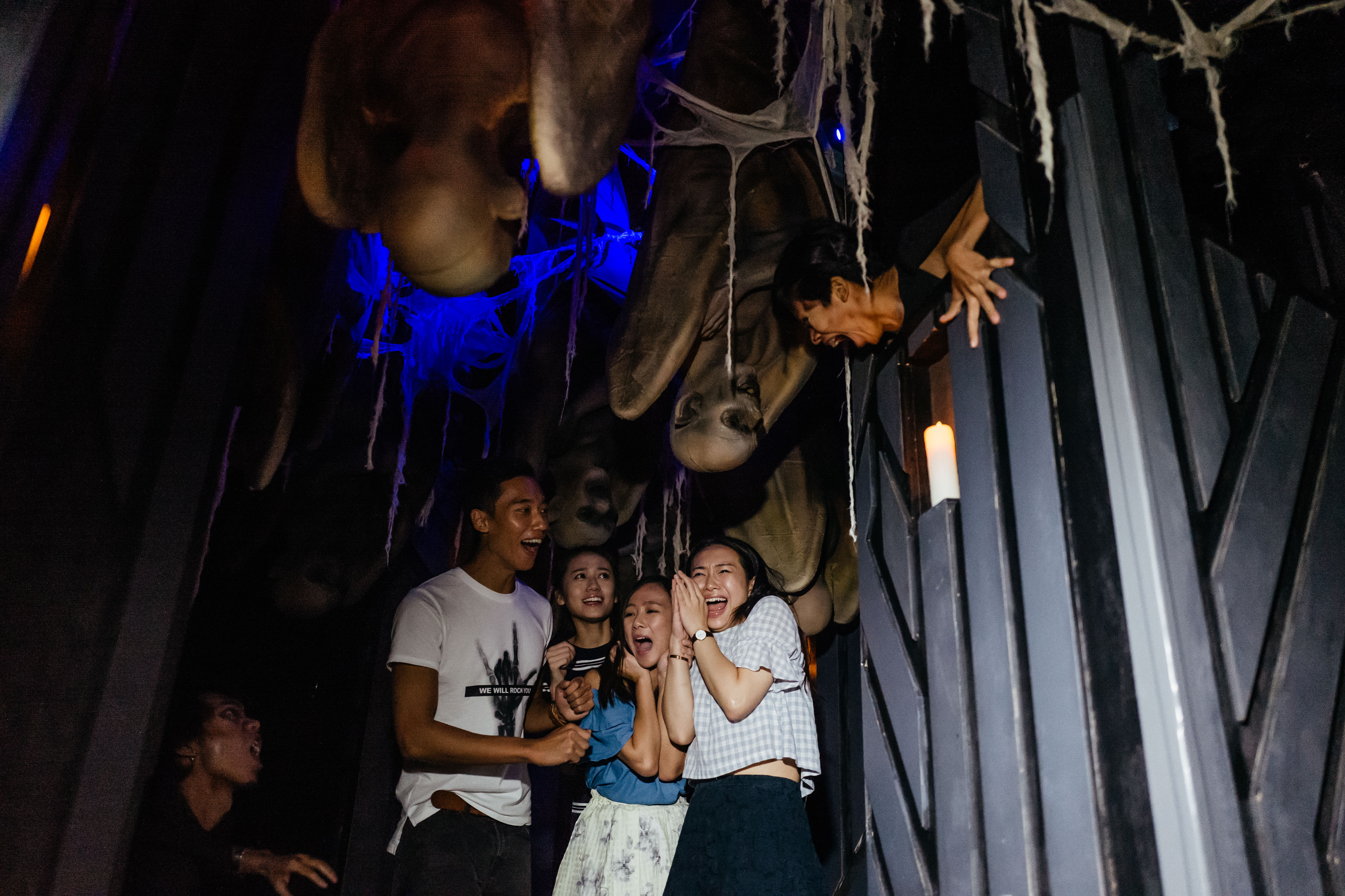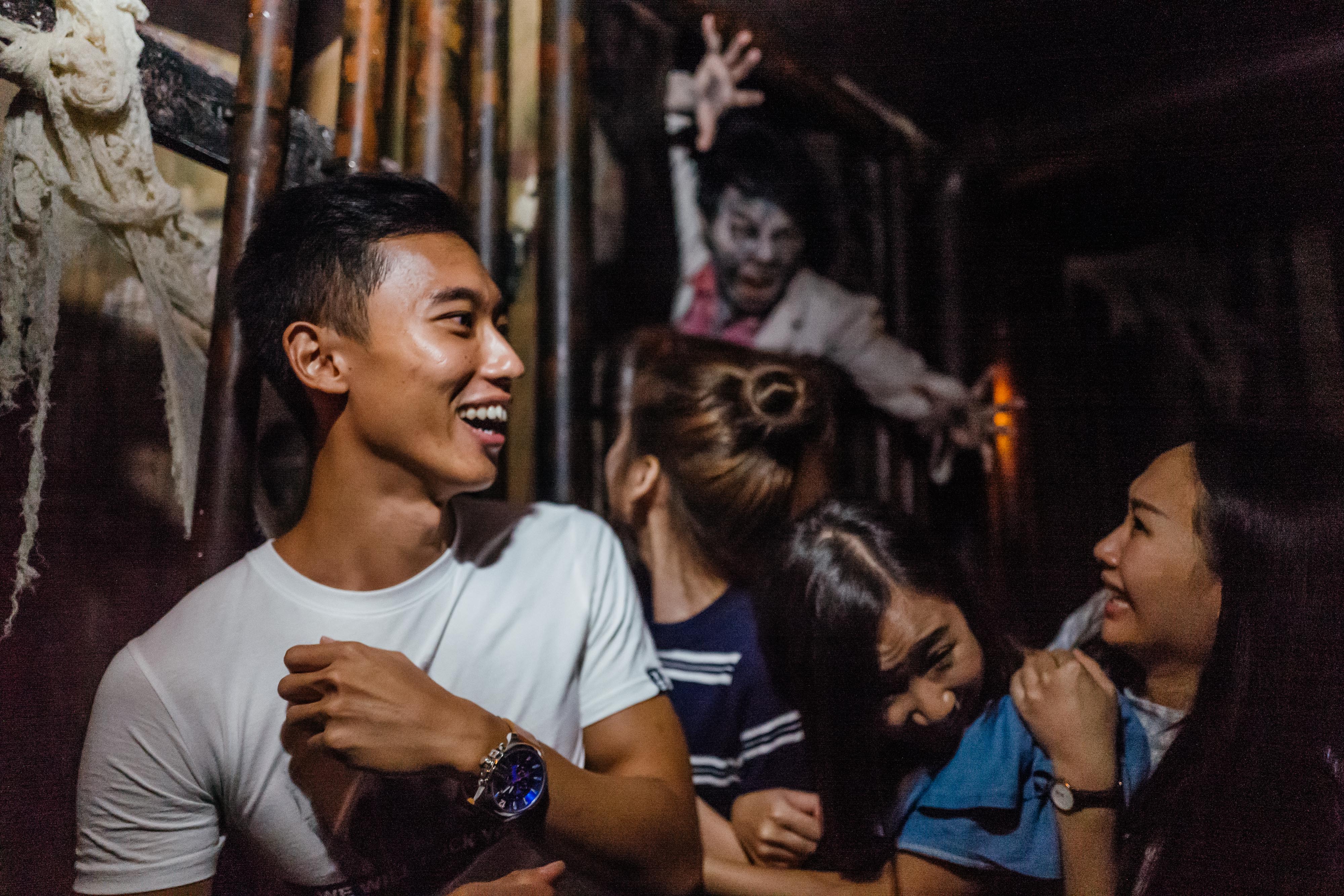 為了本次的活動,海洋公園還找來亞洲人氣偶像「唐禹哲」變身殭屍王,並且規劃以他為故事核心的鬼屋設施「心慌血色吧」。在遊戲第一關就出現唐禹哲的逼真3D投影,一開始就馬上給大家來個下、馬、威!(妞編輯承認自己真的不小心放聲尖叫了)至於他的豪宅裡面還有什麼秘密,就等你來親自挑戰囉!