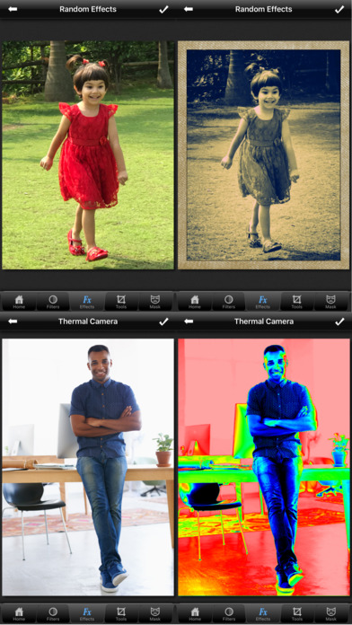 內建濾鏡特效超過百種!並擁有相當完整的照片編輯功能,例如遮罩模式、裁切相片、消紅眼、調整對比度與曝光等⋯⋯除此之外,還支援高解析度的輸出。