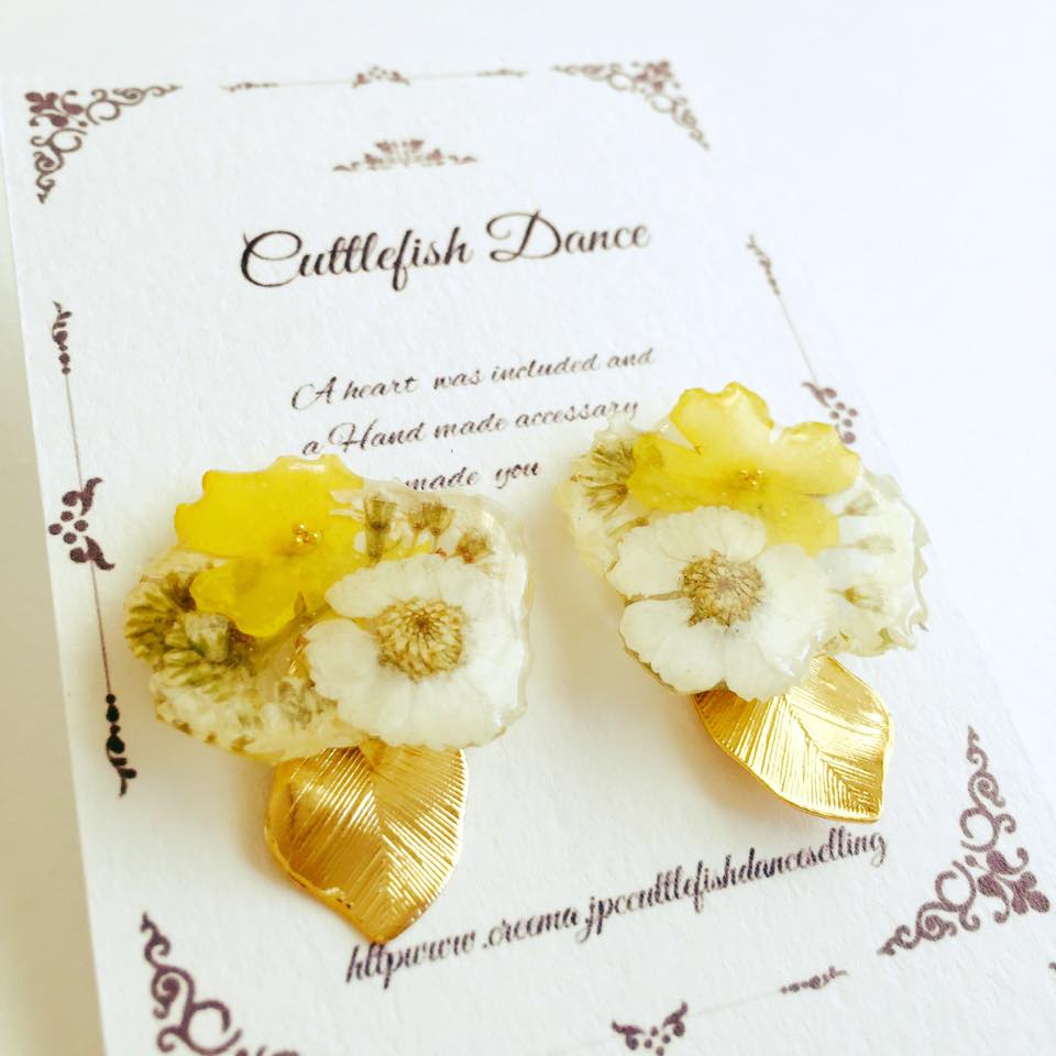 Source:Cuttlefish-Dance - facebook,cuttlefishdance - creema,生きたお花をとじこめて。世界に1つのハンドメイドアクセサリー「Cuttlefish Dance」 - mery