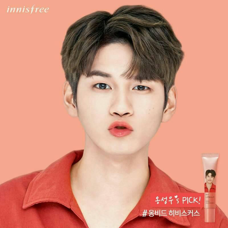 innsfree的韓國官網上還提供會員下載Wanna One的美照,尹智聖、河成雲、黃旼炫、邕聖祐、金在奐、姜丹尼爾、朴志訓、朴佑鎮、裴珍映、李大輝、賴冠霖,親自示範護色潤唇膏的試色照,嘴巴水潤潤的模樣,看得好想一口親下去啊!