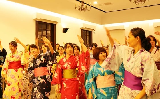 除了體驗穿全套的浴衣,老師們也為大家介紹日本傳統技藝代表之一「日本舞踊」,這是一種能優雅健身又可怡情養性的綜合藝術,由華麗一族的老師們帶領著大家學習一段結合傳統日本舞踊元素和現代流行曲風的音頭歌曲,是最適合初學者體驗的舞碼。隨著帶有濃濃日本味、節奏輕快地音樂聲,現場的大家雖然是第一次跳日本舞,但在舉手投足間,跳起來也都有模有樣,而整場活動也在歡樂的氣氛中圓滿完成!