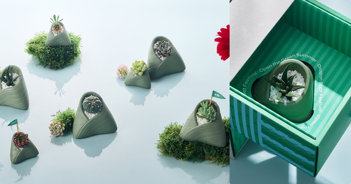 作為多肉植栽設計的先行者,「有肉 SUCCULAND」始終追求植物與當代設計的共生關係。本次禮盒的核心視覺為品牌獨家設計的「粽點盆」。