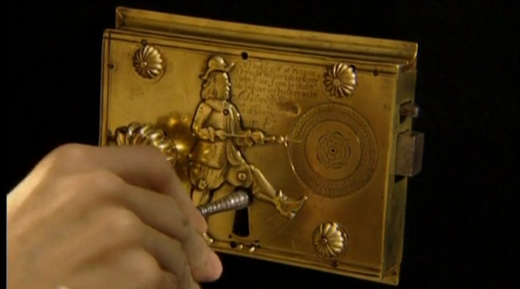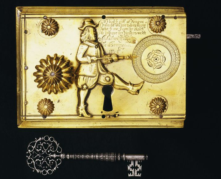 在1680年左右,英國鎖匠John Wilkes設計出一款超精妙的防盜鎖「Detector Lock」。以黃銅與鋼為主材質,裝置於櫥櫃上,負責守護主人的錢財、珠寶、重要文件等。即使距今已有300多年的歷史,仍然閃閃發光。
