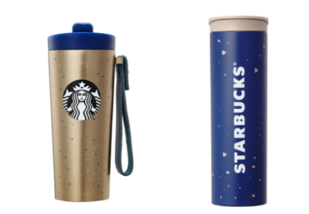 除了米色系列之外,這次還推出了兩款「藍色」新品,藍色杯蓋搭配香檳色瓶身,幾何圖形的杯身裝飾地恰當好處,側邊還有手提的皮質手把,走一個高貴又不失典雅的路線;另一款則是以「湛藍」和「米色」兩種顏色交織而成,上面有大大的星巴克英文字,喜歡簡約風格的妞妞們,一定要入手啊!