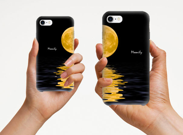 兩隻手機併在一起時就圓滿了月亮倒映在海面上的模樣,而這款手機殼讓手機小姐看了就想起「I love you to the moon and back.」(我非常愛你)這句話,也是很浪漫的一個款式。
