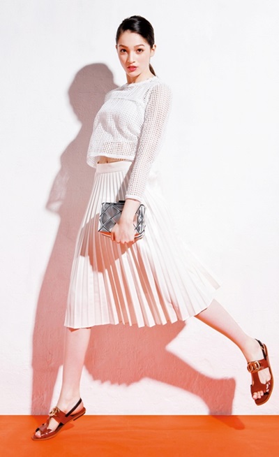 洞洞裝內搭短上衣。上衣NT1590、裙NT2290,內搭NT290,鞋NT26,900,包NT60,200。圖/大美人提供