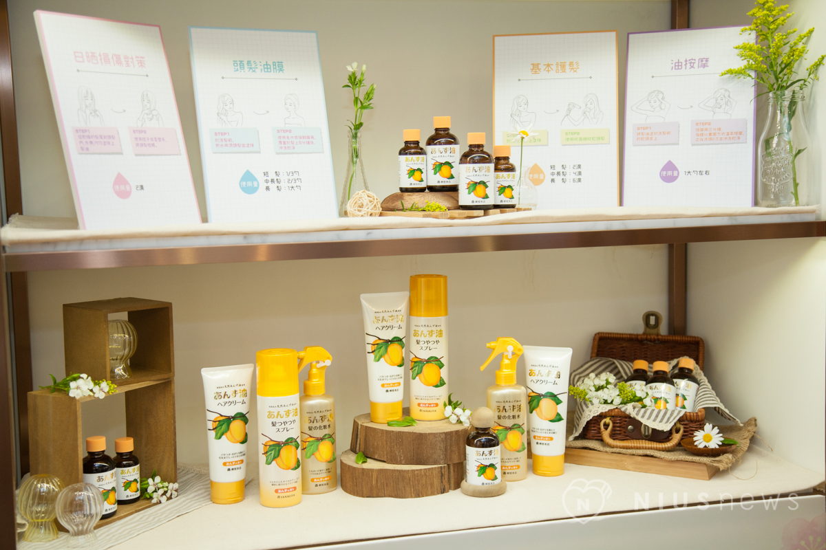 現場擺放著許多柳屋的明星商品與杏桃護髮油使用方法。