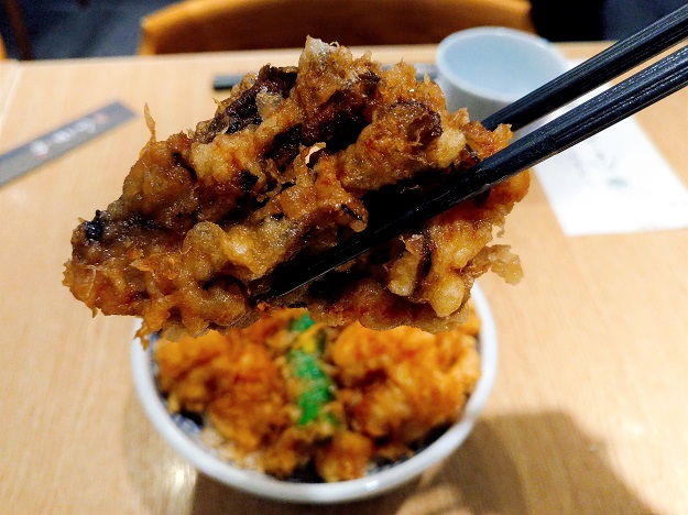 雖然散炸海鮮多是一口大小,但海鮮的等級通通Plus升級啊~看看這魷魚的厚度與Size可是超越原有天丼的等級!