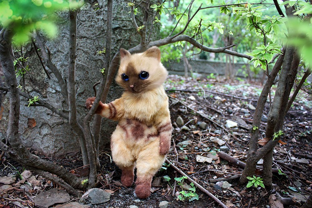 1986年生的PIGU,是兩個孩子的母親,因為非常喜歡貓咪,從2012年開始自學,2013年首次發表全身的貓咪創作,還有貓臉包等作品,與朋友一起舉辦聯合展覽。PIGU所做的仿真貓咪作品都非常的精緻可愛,貓奴必收藏啊!!!!