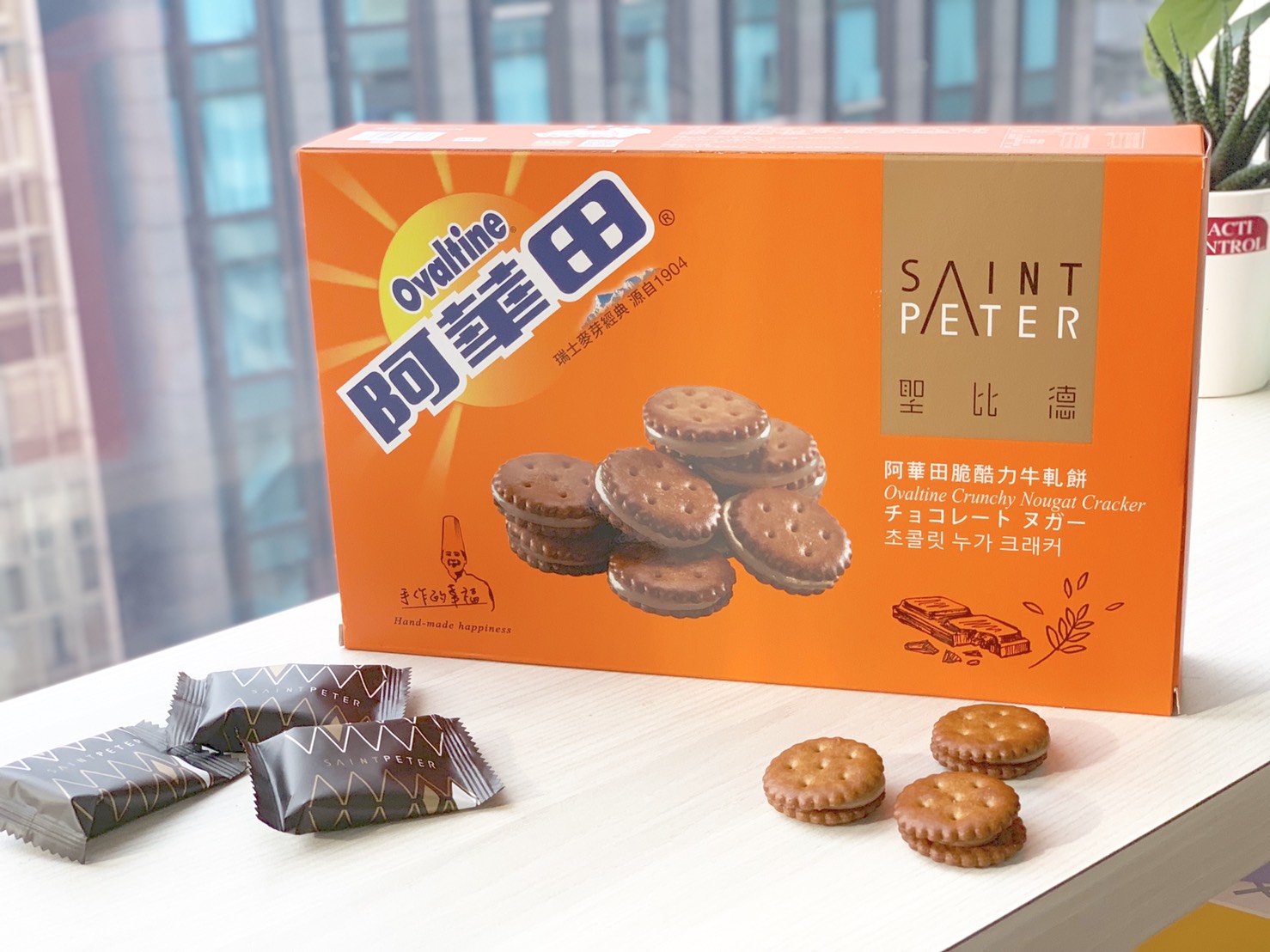 人人都愛的阿華田聯手牛軋糖強手阮師傅,推出了脆酷力牛軋餅!鹹甜脆餅夾入濃甜牛軋糖巧克力麥芽的香氣在嘴中化開,越嚼越香,解嘴饞第一名♡