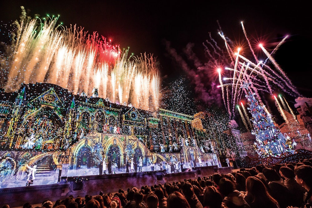 接著快步走進哈利波特魔法世界、穿越過被白雪覆蓋的活米村、新的魔法聖誕樹,我們接著要來欣賞重頭戲「霍格華茲™魔法之夜~冬季魔法~」的奇幻城堡秀囉!