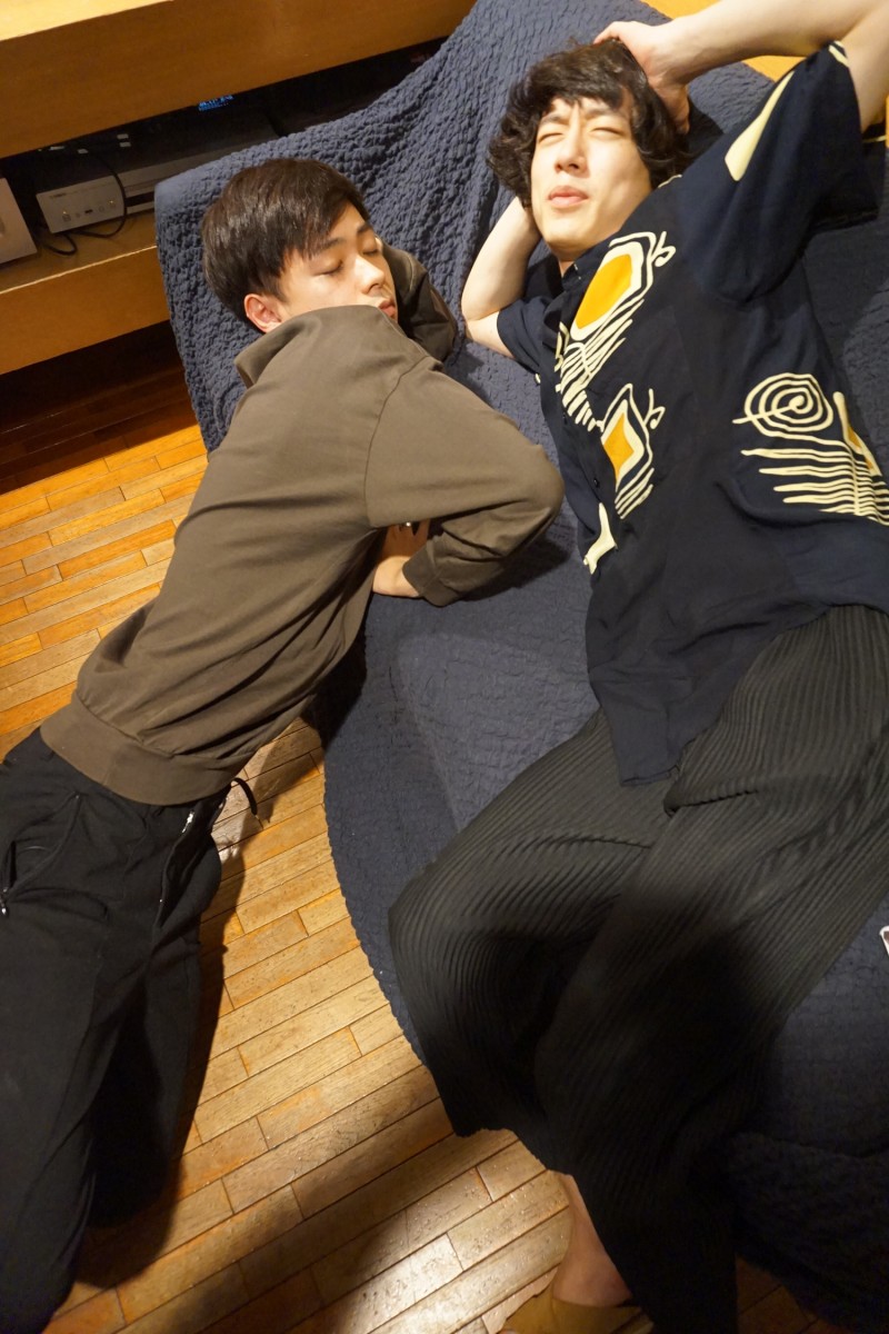 在《MEN’S NON-NO》私服單元的365 STYLE相遇的兩位,一起癱在沙發上不知道在幹嘛。(笑哭)