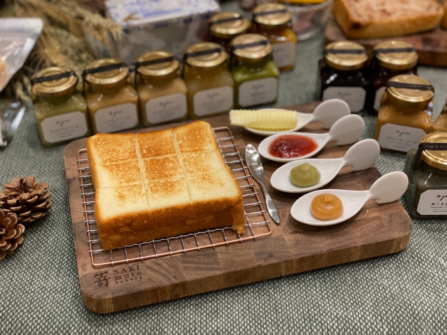 「嵜本SAKImoto bakery 101二店」位在台北101購物中心B1,就在甘牌燒鵝旁,號稱是「等三個月也值得」的吐司,原汁原味重現日本生吐司美味,店內風格比照日本首店難波店,風格採「水泥灰」和「暮色橘」,店門口有著大大一面「生吐司」和「果醬牆」。
