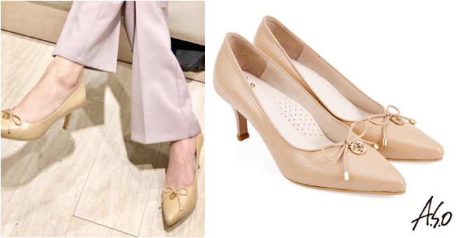 A.S.O 職場通勤 健步通勤水波紋蝴蝶結中跟鞋