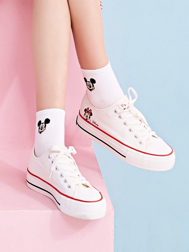 另一雙帆布鞋則輪到「米妮」當主角(笑)!不只在鞋側可以看到米妮托腮的大頭,鞋裡更印上滿滿米妮特寫大頭,一看少女心爆發!