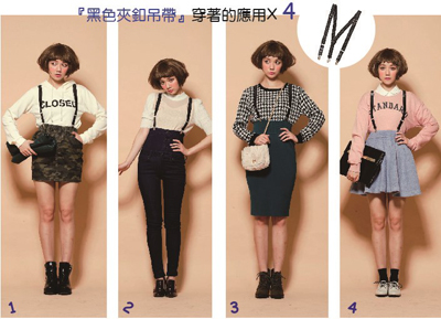 第一次嘗試用吊帶做搭配的女孩們,購入黑色基本款準沒錯!或是直接購入可拆式的吊帶單品,只要是中高腰的裙款都可以順利的搭配喔!