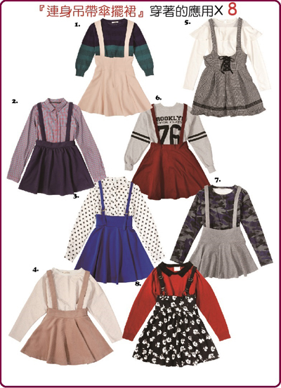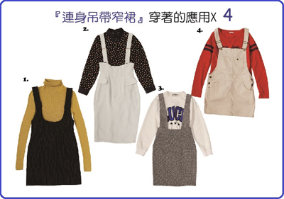 Let’s Jump High!吊帶的萬能傳說【下篇】 Choc、吊帶褲、窄裙、厚棉T恤、小花圖案、傘襬裙、秋冬、約會
