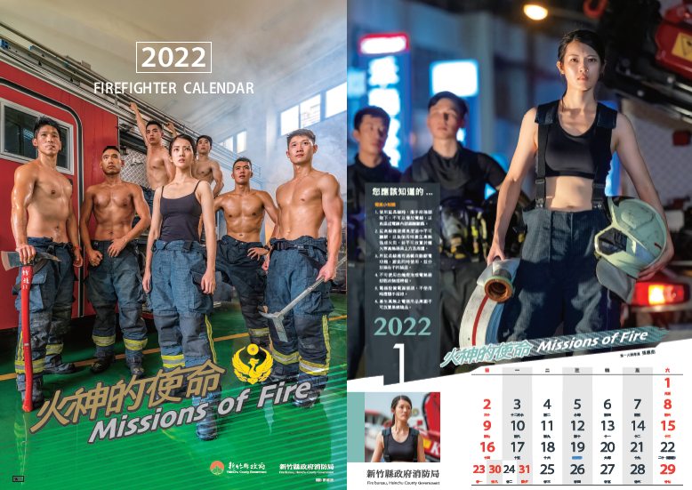 不能錯過的還有新竹縣政府消防局發行的「2022形象宣導月曆」,今年邀來15名在各外勤分隊執行救災救護的猛男、正妹擔綱月曆主角,以「火神的使命」為主題,利用陽光、溫暖的形象宣導消防安全,一樣是利用發票做兌換,每個消防分隊限量500份,新竹的妞妞快換起來~