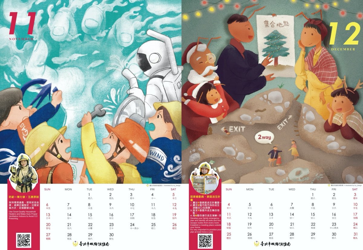 「台北市2022防災月曆」只送不賣,除了各月份繪畫創作,只要掃瞄月曆中的QR Code,將會有插畫解說影片,妞妞們在12月14日中午12點之前都可以上「臺北市政府消防局」粉絲專頁參加抽獎活動,另外他們也有出電子版,妞妞們也可以自行上消防局官網下載喔。