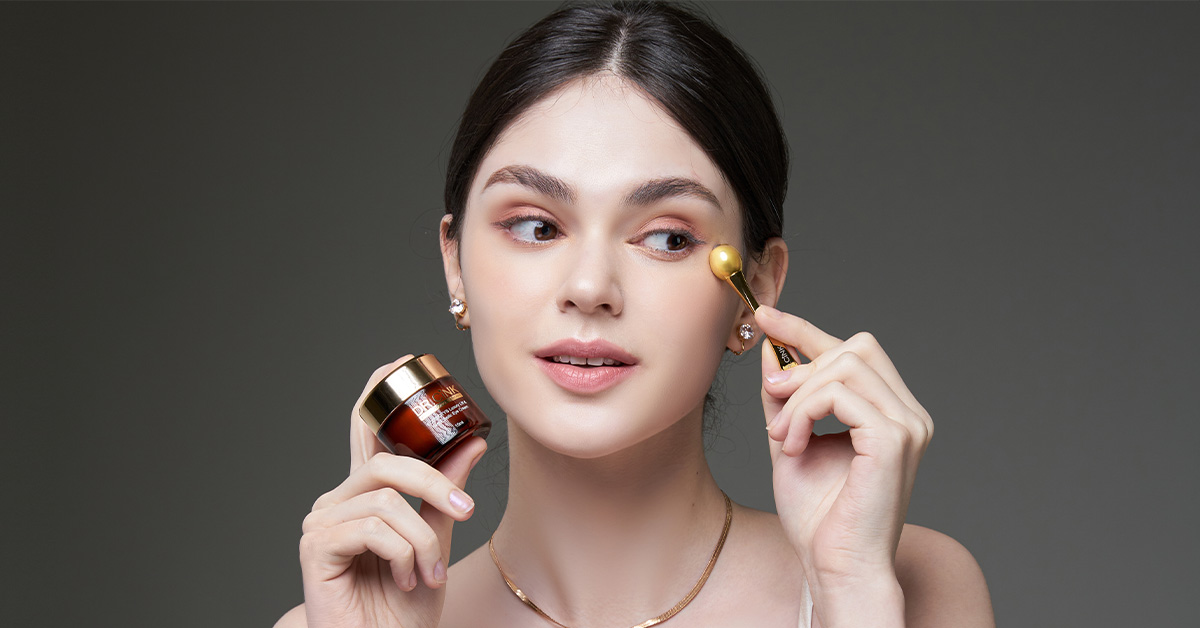 DR.CINK逆齡抗痕花蜜賦活眼霜15mL/NT$1,280。使⽤建議:⼿⼼搓熱後微覆於雙眼放鬆取適量眼霜,將眼霜輕點於眼頭、瞳孔上⽅&下⽅眼⽪、眼尾、眉⼼等處,以指腹輕抹開後,均勻塗抹在全眼周區域,並⽤輕滑且單向地⾃眼頭延伸到太陽穴。搭配逆齡亮眼導入按摩棒,穴位點壓及輕滑提拉,幫助眼霜吸收更深層。