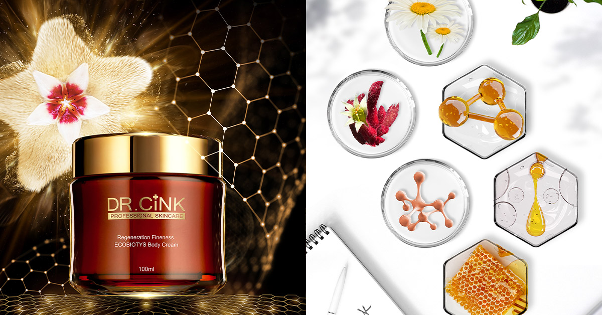 DR.CINK達特聖克⾃2019年起針對逆齡保養研發出獨家的「再⽣肌蜜修復科技」,結合了頂級球蘭花蜜酵母和3D肌因再⽣肽的平衡與修護的智能特性,幫助肌膚的「青春肌因銀⾏」儲蓄膠原、彈⼒等所需的抗⽼資本,改善鬆、垂、紋、受損等肌膚警訊。推出花蜜酵母賦活緊緻卸妝精萃、花蜜精華露、抗皺精華液及⿈⾦胜肽花蜜賦活霜,累積了許多愛⽤者,為了讓保養更加全⾯且針對特地不為加強,除了臉部保養外,眼周與身體肌膚如頸部、⼿背、膝蓋等容易忽略保養的部位,分別添加專利成分「澳洲袋鼠花萃取」為眼周循環舒緩及抗痕、三重蜂王「南法蜂膠蜜」、「⿆盧卡蜂蜜」與「蜂王漿五胜肽」蜜封身體肌齡,有效達到緊緻、撫紋的機能養護!