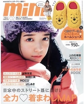 《mini》本期介紹今年冬天最受矚目的街頭風格,像是透過露出肌膚來展現出女人味的韓國街頭風、以中性風單品為中心的王道街頭風等。附錄贈出「小熊維尼室內拖鞋」毛茸茸的材質不只是摸起來很舒服,穿起來也很溫暖。