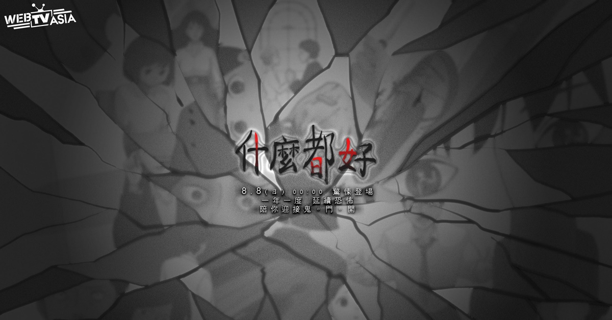 今年農曆七月,WebTVAsia Taiwan YouTube頻道以及Facebook同步上線,6篇「什麼都好」的人氣驚悚故事動畫化,每雙週日晚間22:00更新,即將喚起你心中最深層的恐懼。第一集:《假人》完整動畫|第二集:《生》(將於8/22上線)|第三集:《起床了,小寶貝》(將於9/5上線)|第四集:《跳電》(將於9/19上線)|第五集:《模範家庭》(將於10/3上線)|第六集:《臉盲》(將於10/17上線)