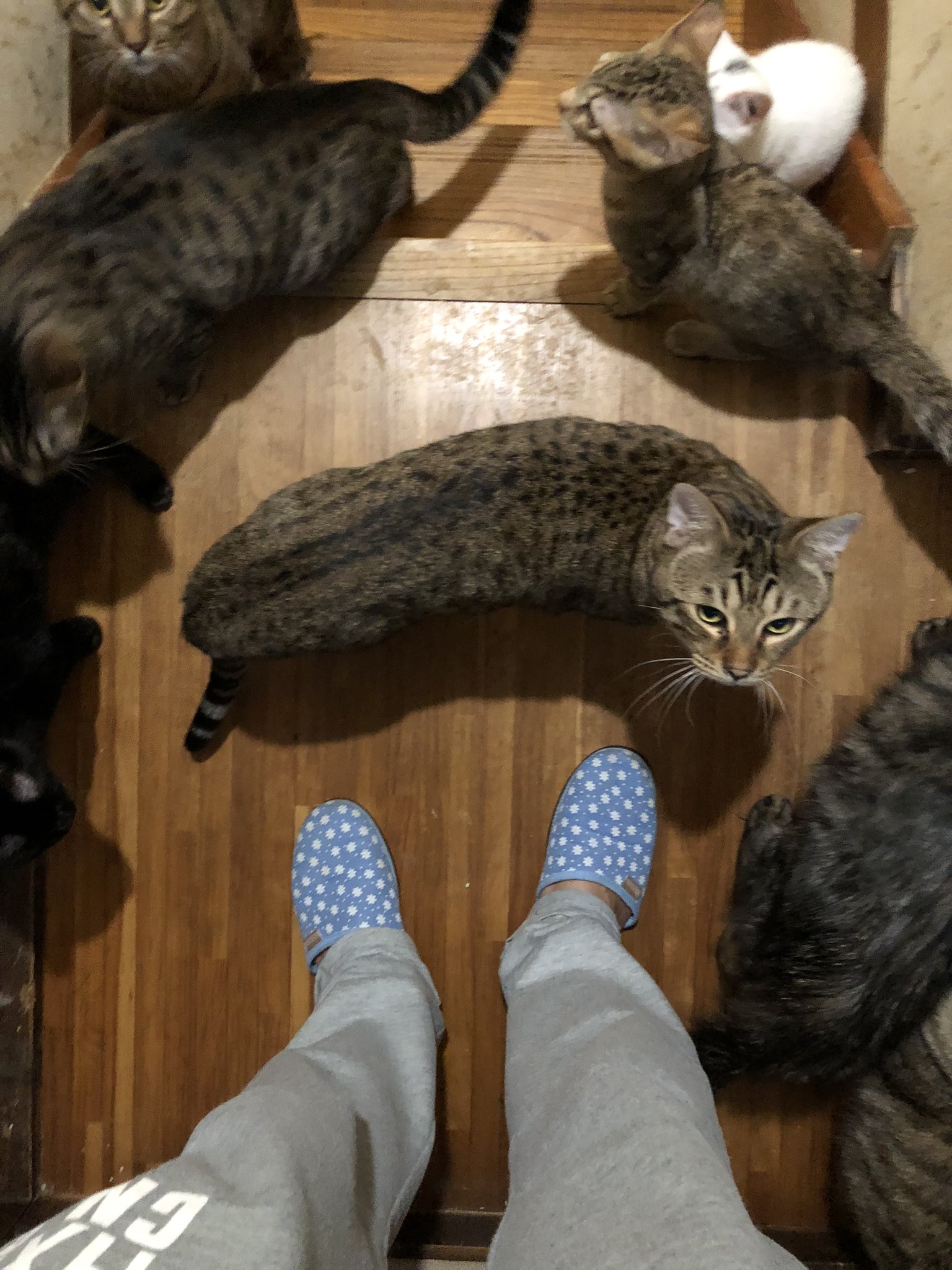 日本推友「@nekodorei50」是一名多貓家庭的鏟屎官(不只多貓,是超多貓),他目前跟超過50隻貓生活在一起,家裡的每個角落都被貓貓徹底霸佔,鏟屎官根本是處於「沒位子」的狀況!(房子到底是誰的?)除了沒地方走路之外,一不小心還可能會踩到牠們,所以半夜起來要上廁所應該會是一場災難。(笑翻)
