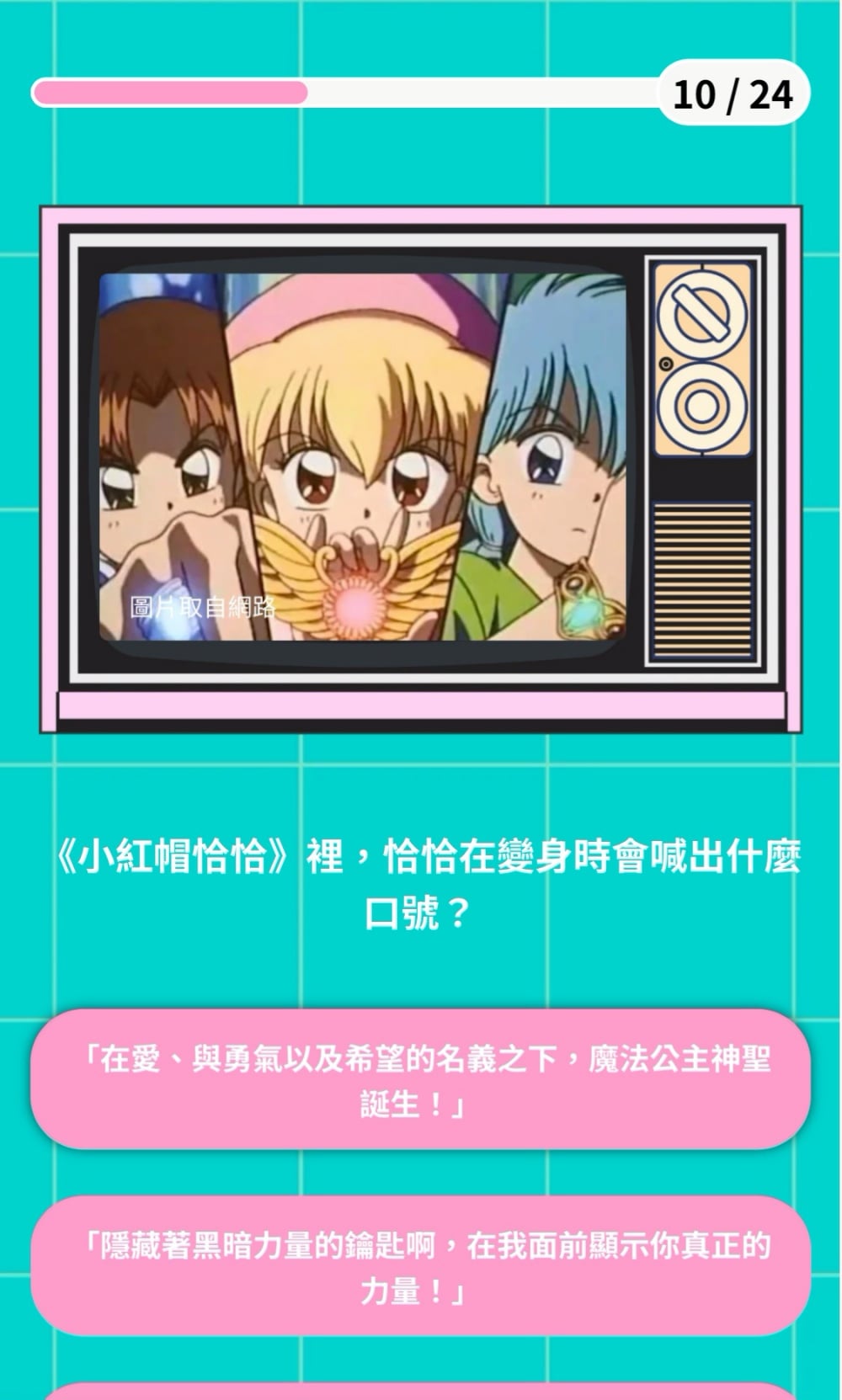 第九題「《小紅帽恰恰》裡,恰恰在變身時會喊出什麼口號?」相信這題對妞妞們來說也是超級簡單的一題吧(笑)。