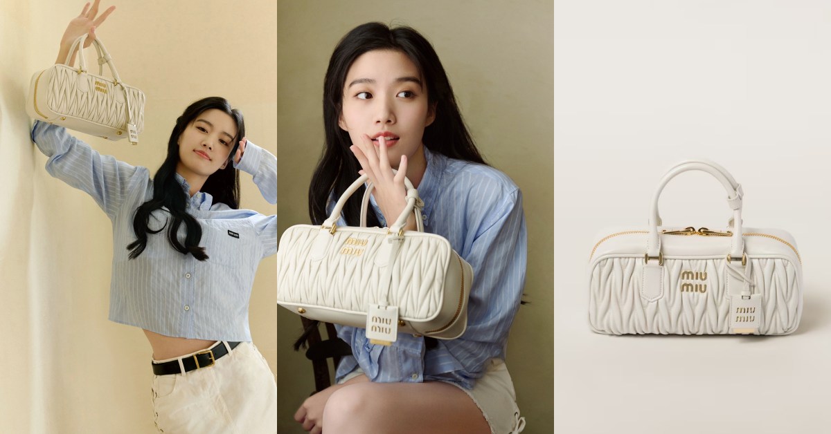 MIUMIU的包包總是能激起女孩們的少女心!不論是從20歲還是到40歲,總能在MIUMIU找到心儀的款式,盧昱曉以校園穿搭為主題示範了柔軟皮革手挽袋,高雅經典的外型搭配壓紋LOGO,無需過多贅述也能感受品牌帶來的工藝,手拿包方式保有日系少女感,喜歡斜揹也可以換上揹帶攜帶更方便!
