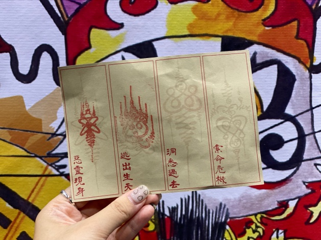 展覽的尾聲,現場販售粽邪週邊限定商品,像是古早碗竹籃禮盒、招福來帆布袋、符咒吊飾、開運擲筊皂、玻璃杯等,不論是欣賞馗爺的正氣凜然、想替親友祈福保平安,或是著迷鬼師父的邪惡力量,妞妞們都能在商品區找到適合你的粽邪之禮!(笑)