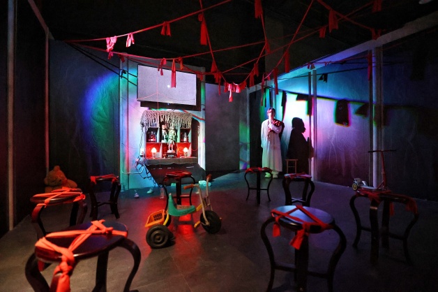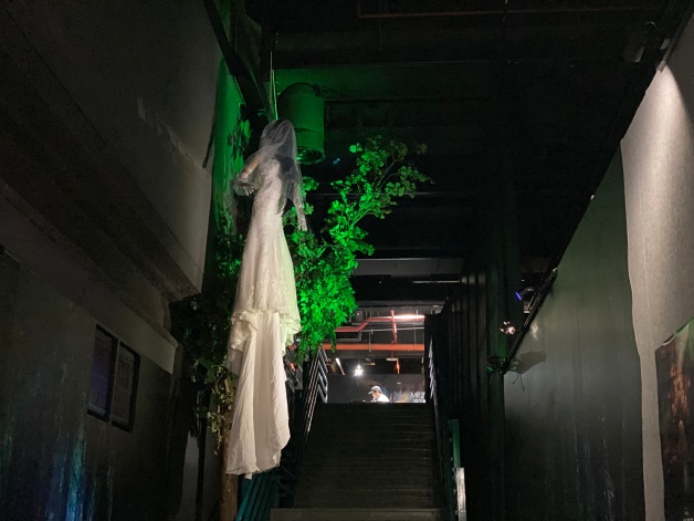 《粽邪》身穿白紗和絕望至極的鬼新娘上吊懸掛在高空中,360度零死角,讓送煞人一睹上吊者的恐懼,千萬別和祂對到眼,更解鎖尚未公開之《粽邪3:鬼門開》經典場景「古曼童祭壇」,帶妞妞們認識泰國宗教文化,裝置藝術互動區更可以近距離體驗禁忌儀式!
