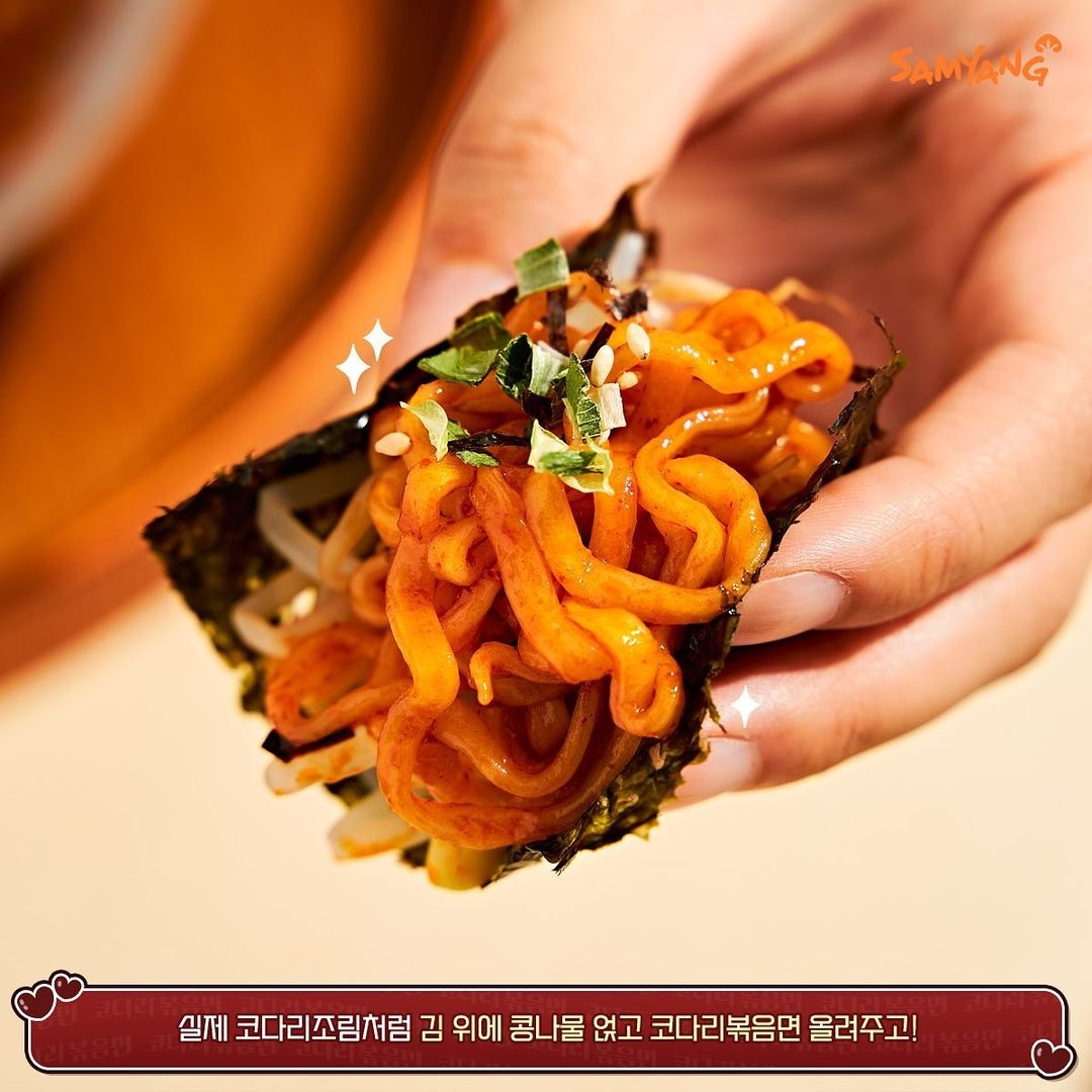 韓國元老級泡麵品牌「三養」,今年則以韓國傳統海鮮料理「半乾明太魚」做為醬汁原料,推出了「半乾明太魚拌麵」。味道完美復刻了半乾明太魚的香辣與鮮美,讓人一口接一口停不下來。想要讓這款泡麵更好吃,可以學官方的做法,和黃豆芽一起包在海苔裡吃,也有網友推薦加一點芝麻油拌炒,或是加起司和飯一起炒,風味更特別!