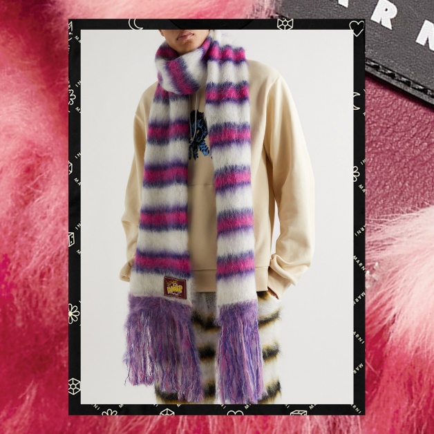 Marni經典的馬海羊毛混紡用來製作同款配飾,包括冷帽、圍巾及襪子,營造矜貴及舒適感覺。