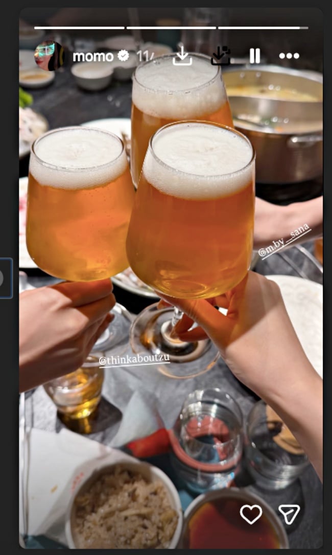 網友根據MOMO在IG限時動態的「乾杯圖」,發現背景的鴛鴦鍋以及飯碗,一比對馬上發現三人是到高雄的知名『溫肚火鍋』聚餐,當然也沒忘點了招牌麻油雞釜飯,粉絲們紛紛大讚:「子瑜懂吃欸」、「這間超好吃」、「同款餐廳即刻訂位起來~」