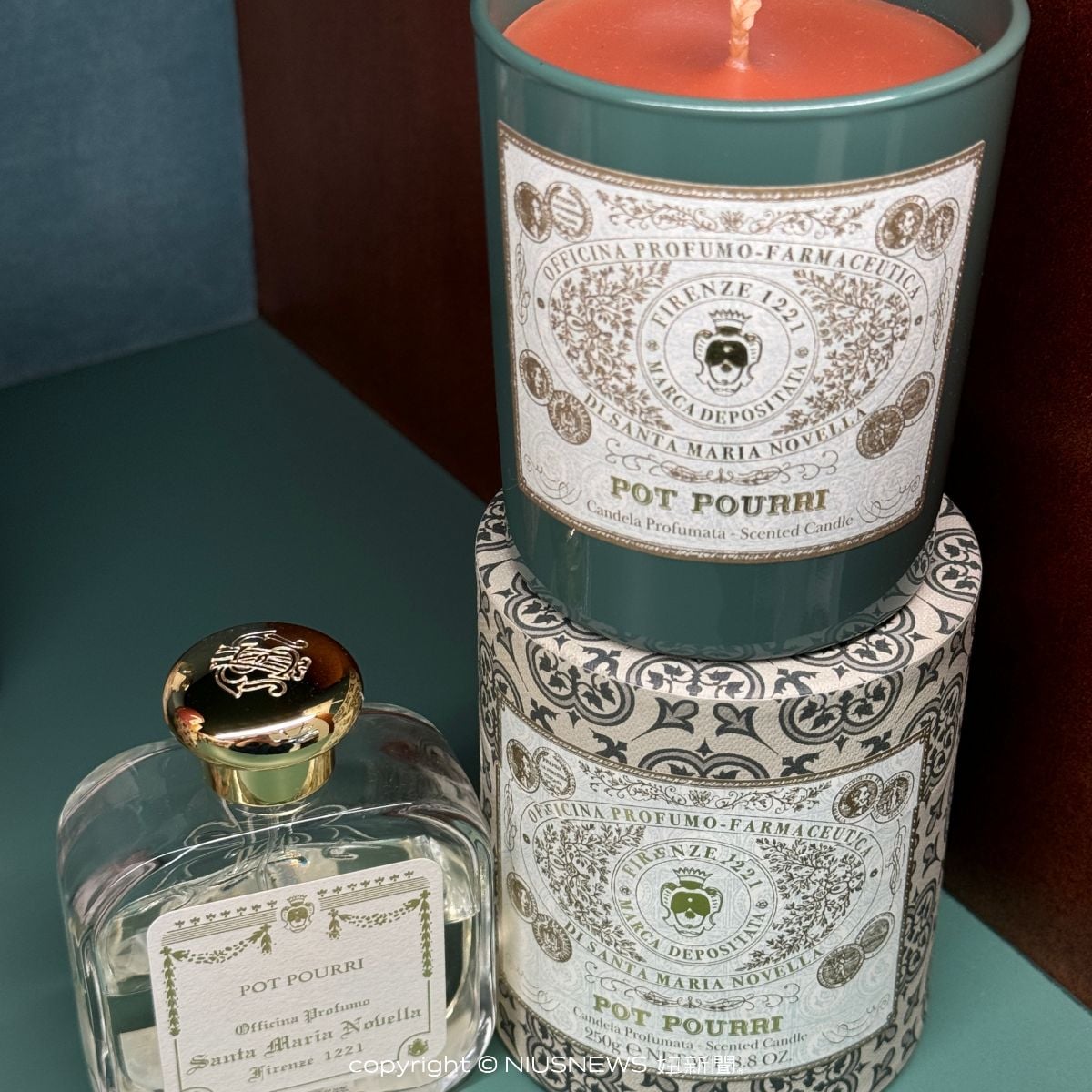 以Santa Maria Novella古傳製香術製成的經典香氛「Pot Pourri秘方撲撲莉」,靈感源自托斯卡尼山上的草木香氣,由四季中的花苞、葉片和花瓣等多種花植組合而成珍貴花植古源秘方,聞起來帶點神秘的藥草氣息。點燃蠟燭後,讓自然、充滿能量的氣息浸透每個角落,為空間帶來生機與活力,這款也是CNBLUE鄭容和的愛香。