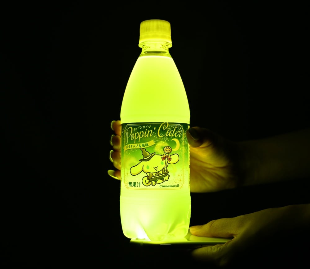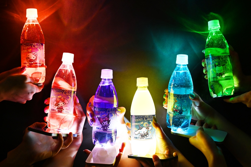 三麗鷗與日本炭酸飲料「Poppin Cider」驚喜迎來第三度的合作!因應萬聖節的到來,品牌特別打造名為「Poppin Cider Magical Night」的全新聯名汽水。不僅讓三麗鷗旗下的6大經典角色化身成法力高超的魔法師,營造出瀰漫奇幻氛圍的魔法世界,另外只要利用手機的手電筒從瓶身底部照光,還可以讓汽水產生五顏六色的霓虹色彩!