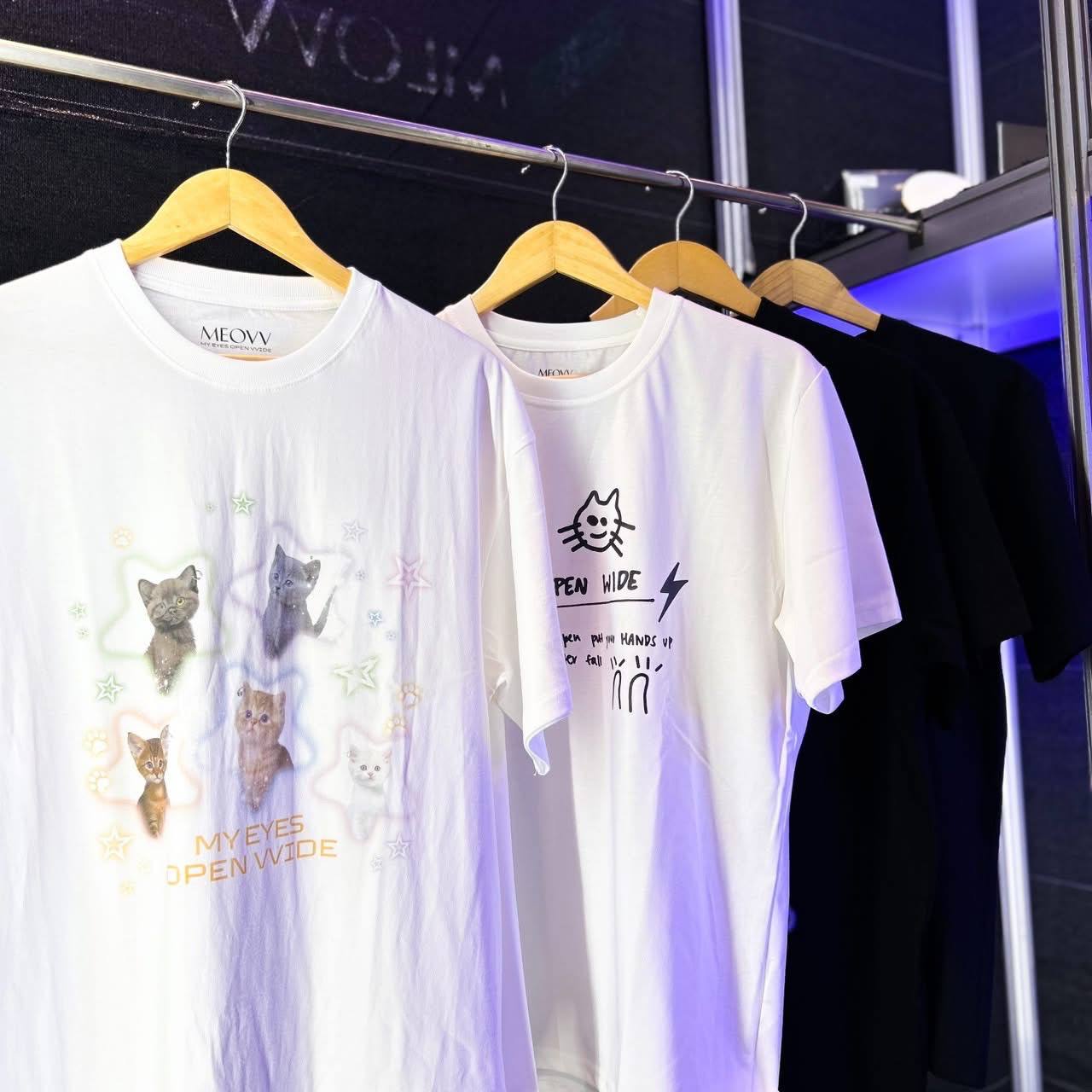 穿著MEOVV專屬短袖T桖到見面會應援吧!現場販售四款不同風格設計的短袖T桖,材質柔軟舒適,現貨直接收不用等!
