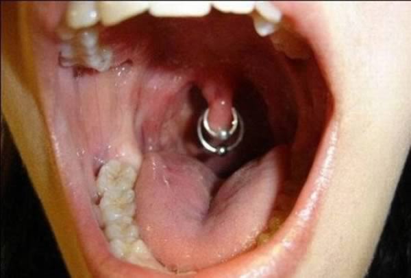 這樣扁條腺發炎了要怎麼辦呢?通常穿小舌的人都會在他們小舌環上裝飾一個小珠寶,相信高歌一曲的時候,小舌應該會無法震動吧。(因為感覺太重)