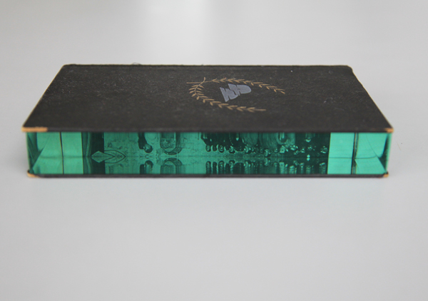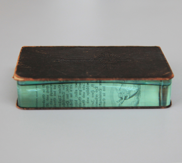 古老、斑剝的封面,夾著帶有現代感的玻璃,有魔幻的感覺,像是從哪個神祕宅邸中挖掘出的寶物。
