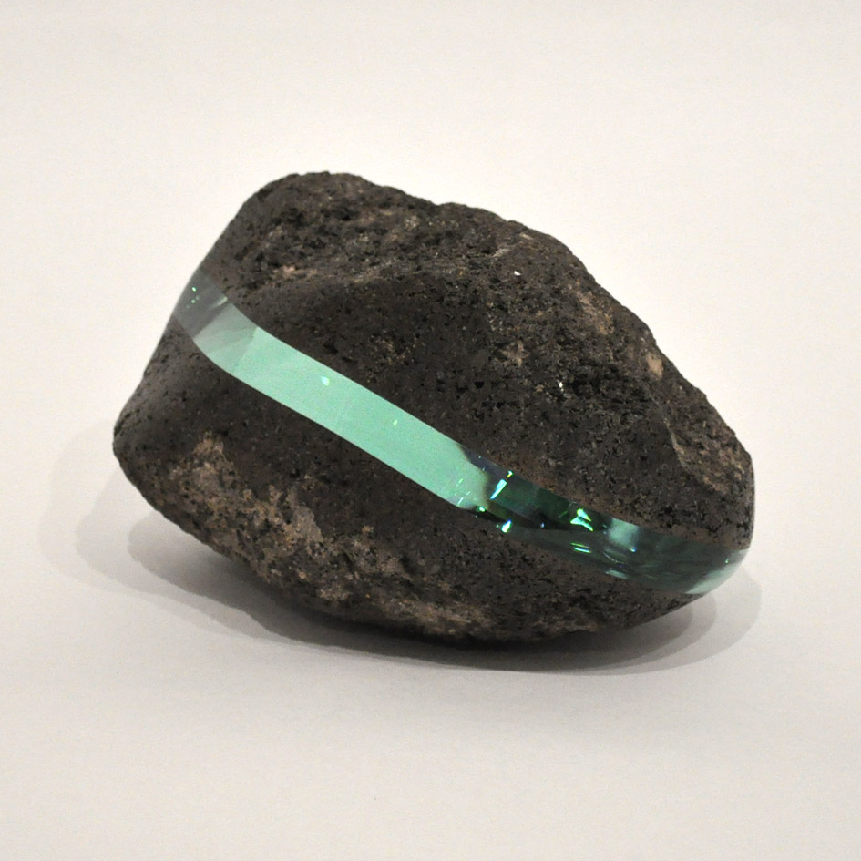 玻璃與石頭間沒有一絲縫隙,表面也平順光滑,彷彿這樣才是這顆石頭該有的樣貌。