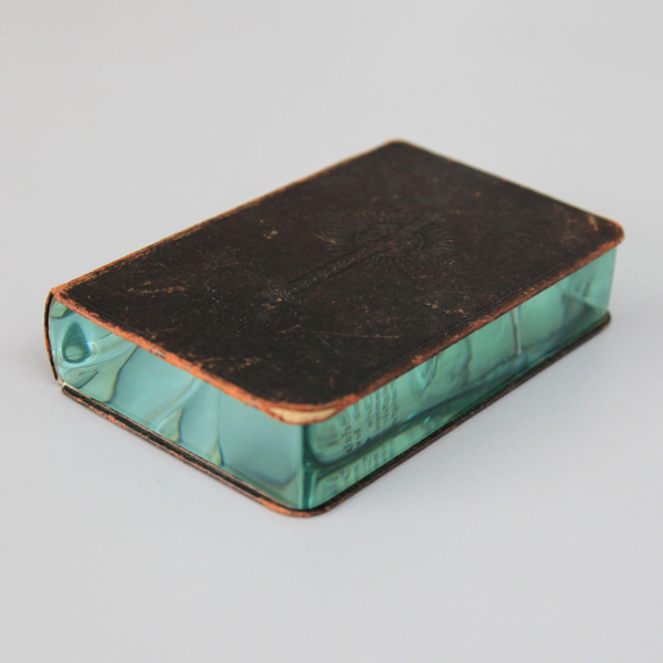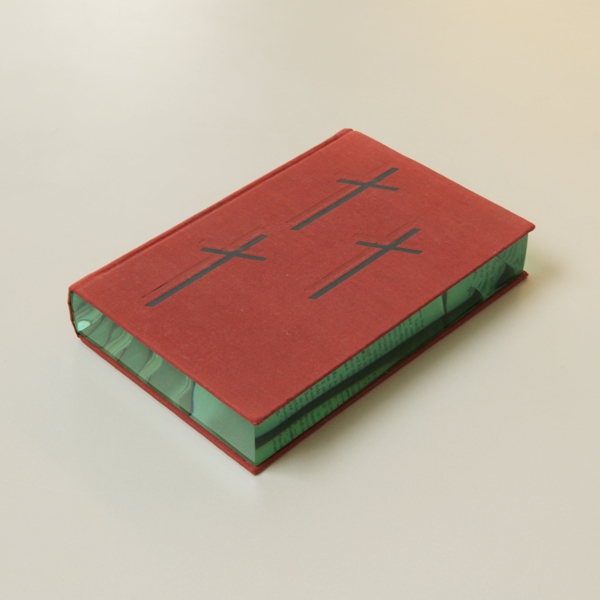 用布做封面的書本現在已不多見了,冰冷與溫暖的材質和諧地結合。黑色聖十字的與冰冷的玻璃呼應,讓這本書顯得特別莊嚴、神聖。