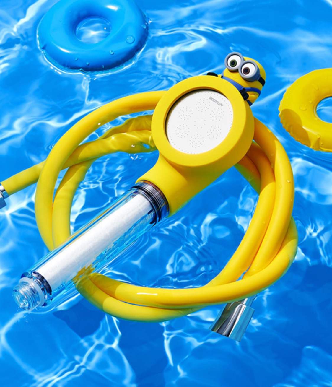 玄彬歐爸洗澡必備!Bodyluv最經典熱賣的純淨完美蓮蓬頭,擁有特殊水孔設計,加上純淨完美濾心,不僅在沐浴過程可以省水,還能清除水管內的鏽及雜質。這回攜手小小兵聯名,蓮蓬頭直接換上小小兵代表色黃色,上面還有隻公仔裝飾,很像是小小兵在偷看你洗澡(羞)掛在浴室療癒指數滿滿,每天都讓人好期待洗澡時光。