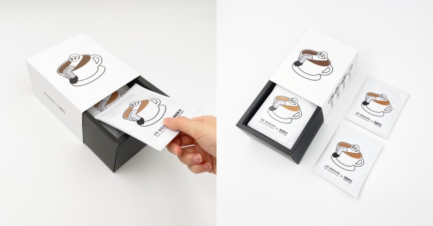 這次為了讓消極的療癒感能夠走入生活,分別與第六市場冰穀咖啡和上好生醫科技合作打造全新周邊,像是馬克杯、陶瓷杯墊、紙膠帶和帆布包等品項,另外,消極男子更親自為首次開發的咖啡掛耳、口罩和泡泡架,新繪三款獨家周邊圖樣,除了經典的黑白雙色之外,包裝上更難得出現了「色彩」,而且每個周邊商品還有非常消極的寓意呢!