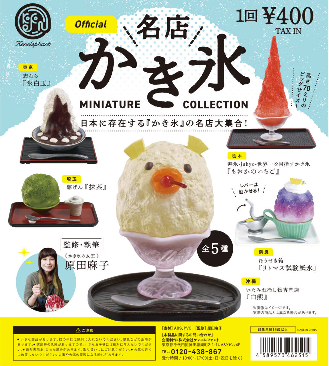 擅長將真實世界的食物縮小成掌上小扭蛋的日本品牌Kenelephant,這個月推出「日本名店刨冰模型」。一共有五款,由日本刨冰女王原田麻子監修。