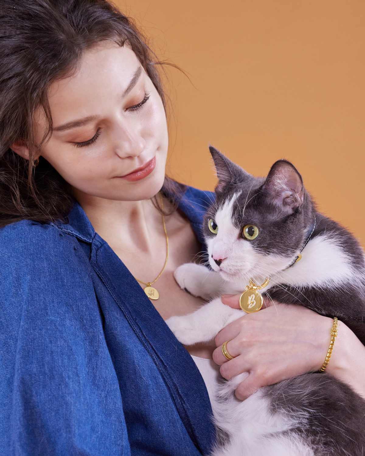 這次的設計主要延伸自品牌的Initial字母系列,金色的圓形吊牌可以挑選A-Z的字母,與圓牌項鍊同樣都會是以純銀鑲鋯石的設計打造,無論佩戴在主人或是毛小孩的身上,都能展現優雅的質感!